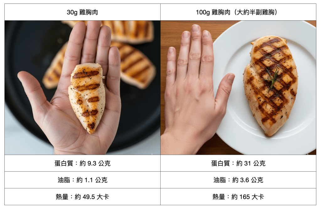 受傷後蛋白質需求會比平常高出 1.5~2 倍。每餐建議至少攝取「一個手掌大小」的蛋白質(約 60–70 克)。
